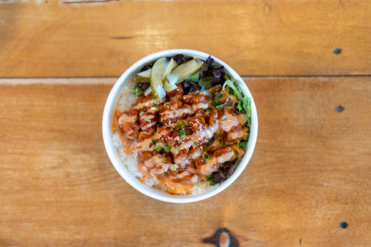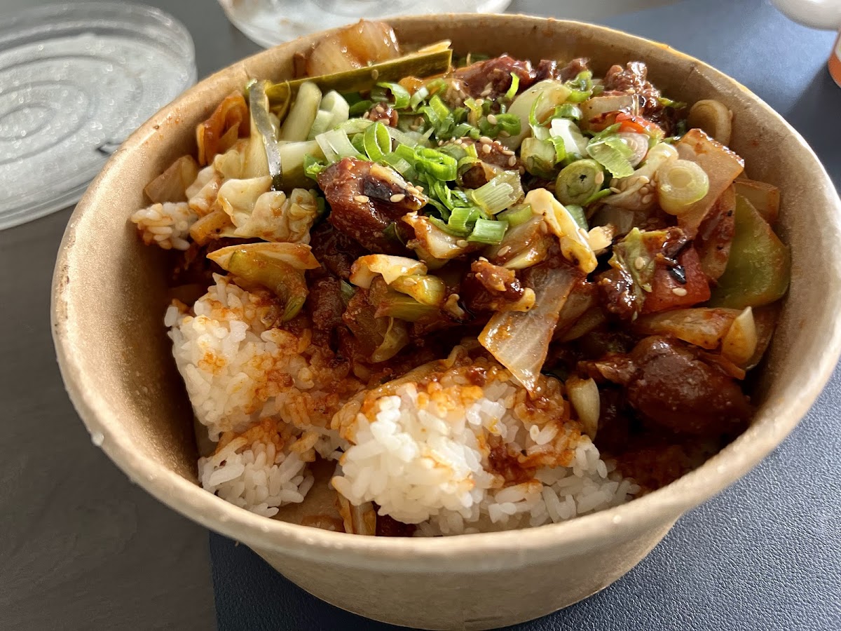 I’ve eaten here more times than I can count, both grabbing a quick lunch between meetings and lingering over dinner with friends. The menu is built around Korean-inspired barbecue rice bowls, and that focus shows. Instead of overwhelming choices, you get a tight selection that’s been clearly tested and refined. Each bowl starts with a base of warm rice, layered with proteins like short ribs, spicy pork, or chicken, then finished with vegetables and sauces that balance sweet, smoky, and umami flavors.